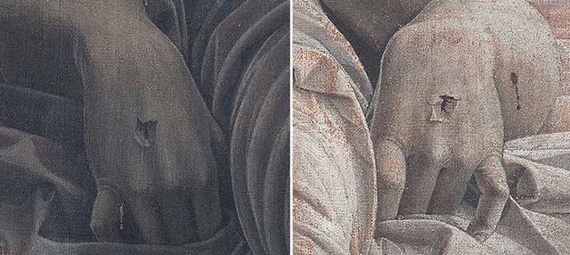 曼坦尼亚《哀悼基督》与Orazio Borgianni《哀悼基督》细节对比