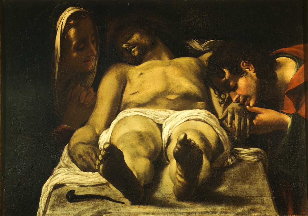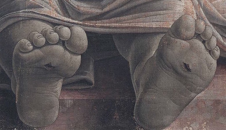 透视的效果使苦难与哀痛超越画框,双脚上的钉洞更是直戳观者的内心,导致在这幅画狭窄的空间中弥漫着基督受难的悲剧气氛。