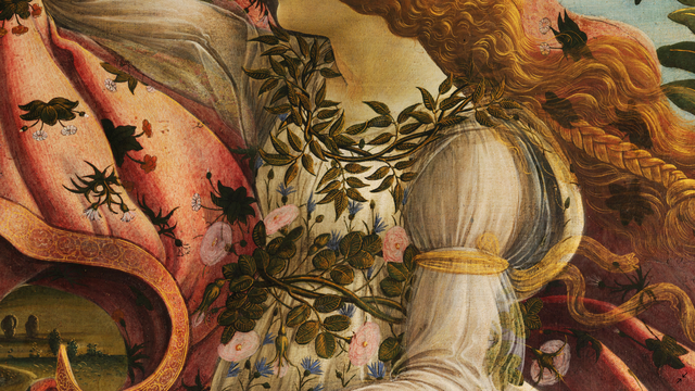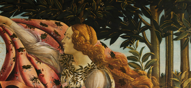 《春》的题材也取自波利齐安诺的长诗《吉奥斯特纳》,波提切利舍弃了原诗中过于喧闹的描写,把美神来到世间的地点想象为无比的幽静。