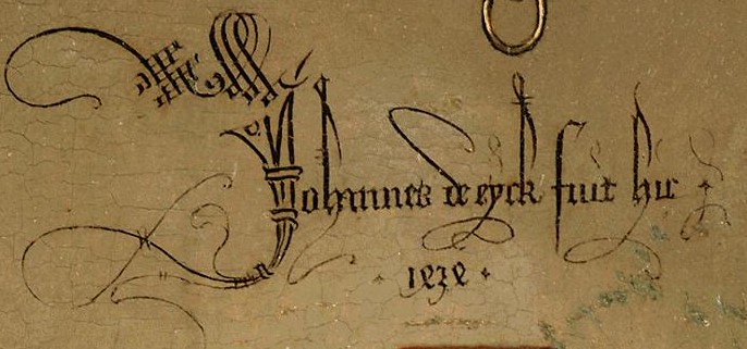 凡·艾克存世的作品中有几幅有签名和年代,这在他的那个时代非比寻常。这些款识能够帮助艺术史家对他的作品进行鉴别,并以署名作品的特征为依据,推定其他未署名的作品。