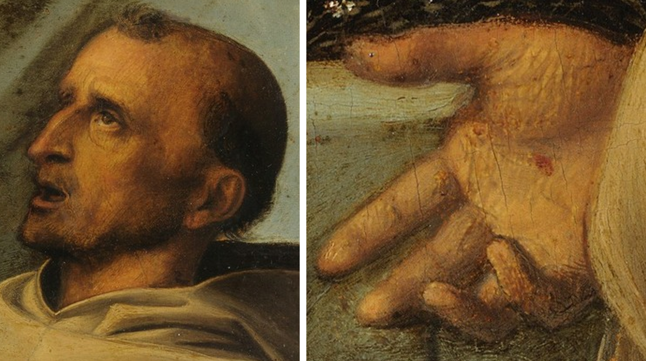 1480年《狂喜中的圣弗朗西斯》就正好处在这个中期变化之中,固体和空间中的界限变得模糊,明确的轮廓线条也逐步消失,空气成为了两者之间的媒介,而空气则由光和阴影的交替来表现。