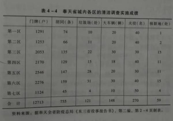 奉天各区清洁调查实施成绩