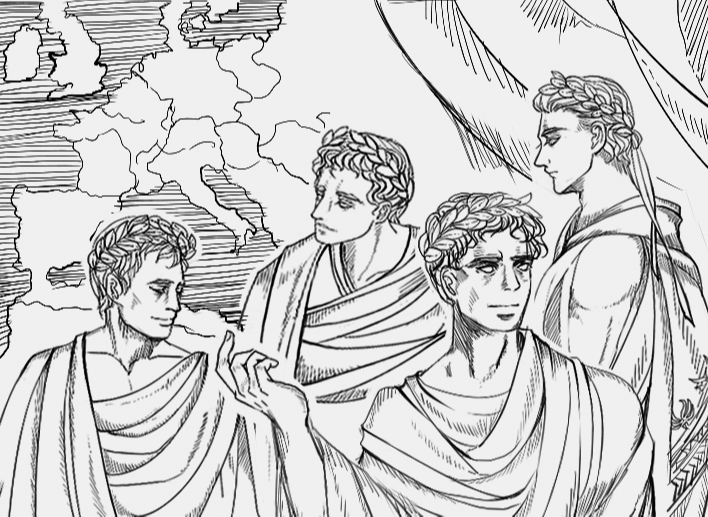 第二,罗马原本就有共治的惯例。正皇帝奥古斯都会让继承人作为助手,赐予凯撒称号,和自己一起治理国家。最开始的奥里略和弟弟维鲁斯共治,副帝维鲁斯后来继承了正皇帝的地位。不过有两个“奥古斯都”,并且把四帝作为固定制度还是戴克里先首创的。