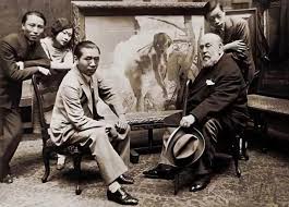 上海美专的创始人刘海粟(左三)和张弦(左一)及傅雷(右一)拜访巴黎美术学院