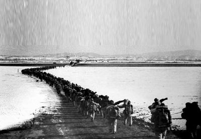 于是,毛泽东一道命令,聚集东北的几十万中国人民解放军,都换上了那种轧出许多道线的军装,当时人称“国际服”。“中国人民志愿军”就这样产生了。