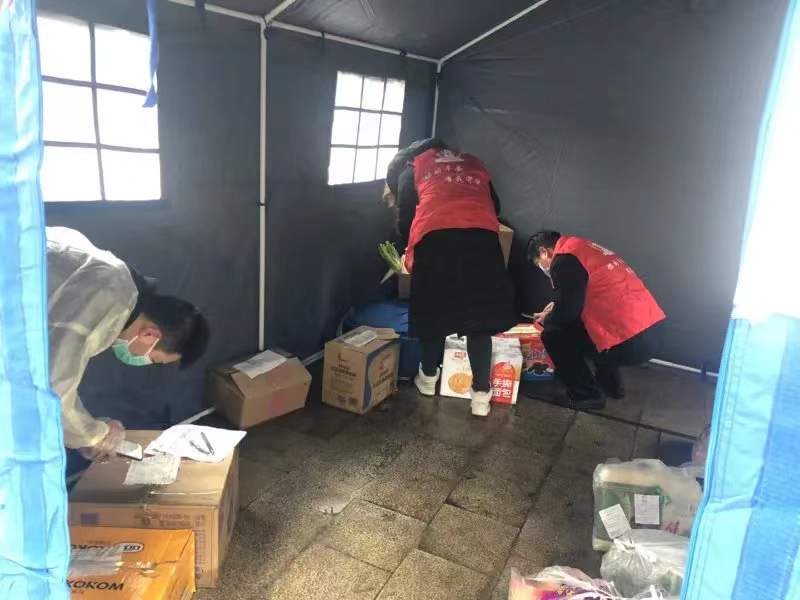 ▲志愿者将居民的包裹转移到救灾帐篷中。受访者供图