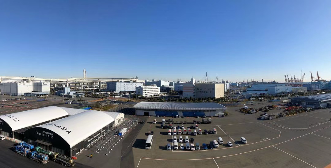 2月18日从邮轮甲板望出去,停靠在附近的巴士、救护车等。Twitter/@Alice01599641