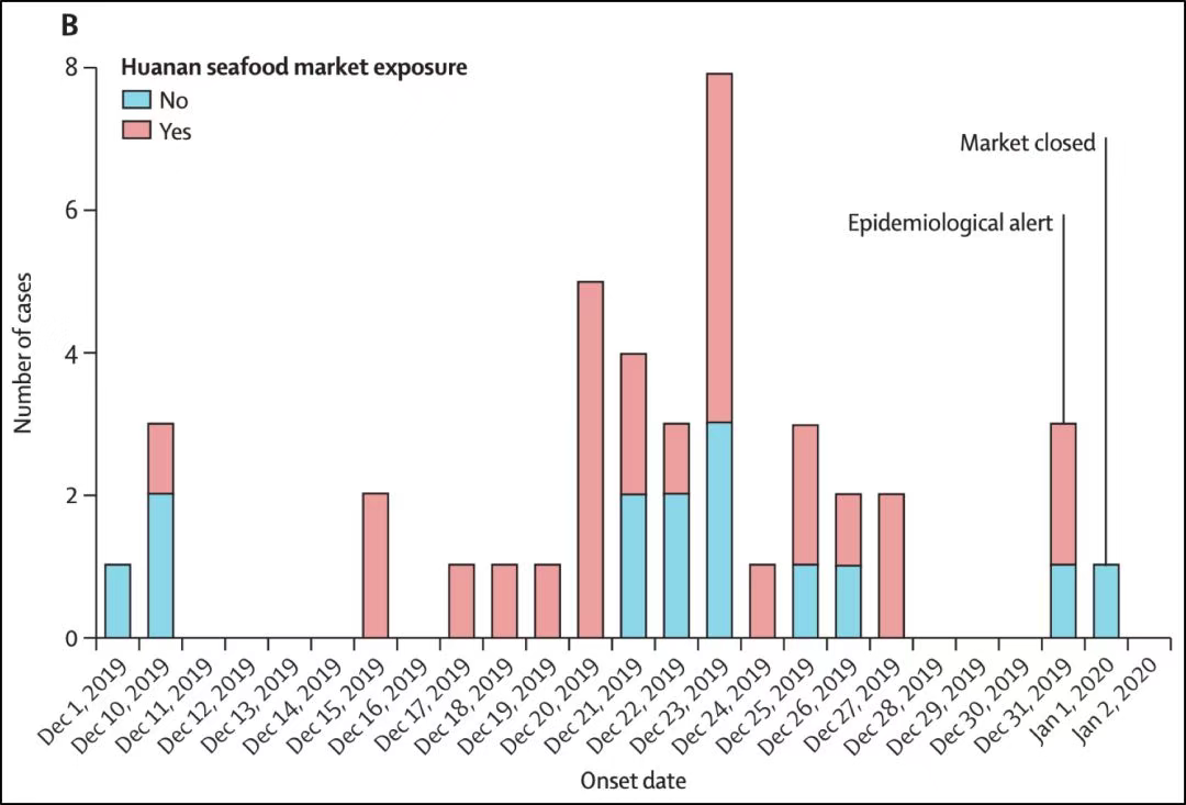 早在 1 月 24 日,一项中国学者在线发表于《柳叶刀》对武汉最初 41 名新型冠状病毒感染者的分析论文就推测,华南海鲜市场或许不是病毒的源头,也可能从其他地方传入。