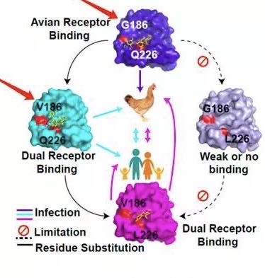 同样的,经过国内几所大学科研人员的联合研究,我们逐渐了解了 H7N9 是如何传染到人类身上的。
