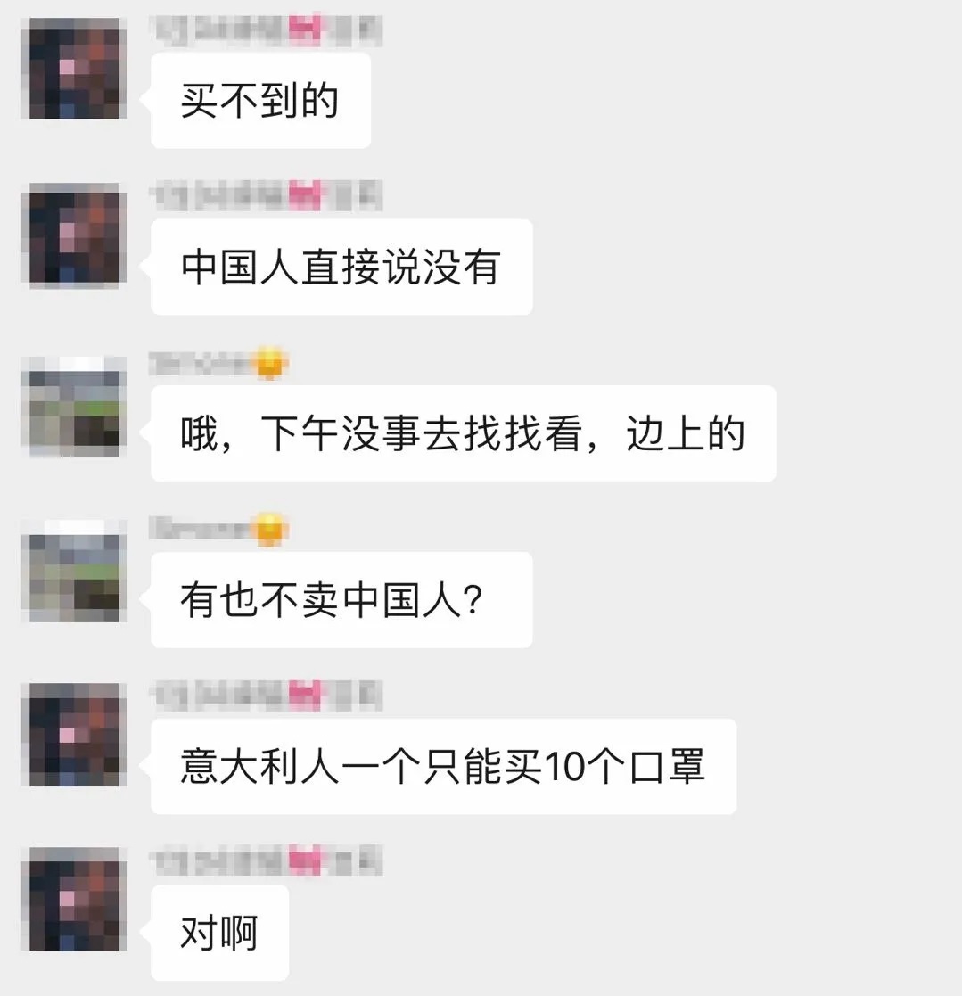 在意大利生活的华人,大多数都在餐饮、服务业打工,如果你戴着口罩,没有人敢来你这里吃东西的。况且,最近爆出来很多戴着口罩的华人在街上被打了。