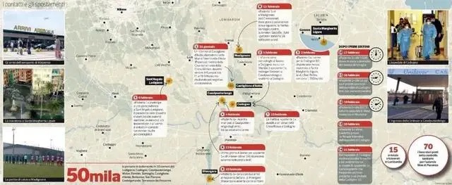 意大利确诊的第一例病人,是个社交狂。他参加完家庭聚会、社交聚会、足球比赛、跑完马拉松,然后确诊了。预计辐射到的人群有接近5万人。