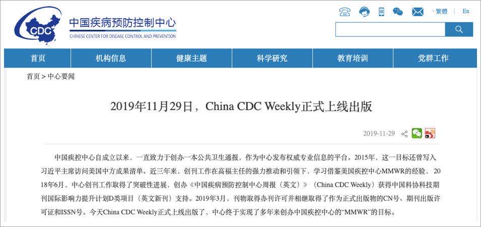 美国有公共卫生周报「MMWR」,中国学出了「China CDC Weekly」。