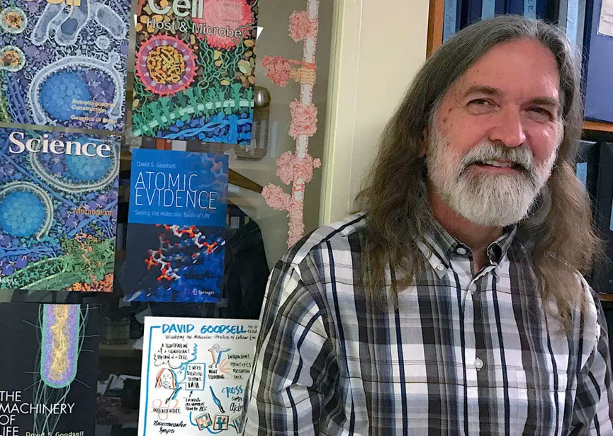 1987年,他来到美国Scripps研究所并开始与分子生物图像先驱亚瑟·奥尔森(ArthurOlson)合作,用计算机研究生物系统结构与功能的同时也逐渐尝试用笔绘制一些活细胞中的分子图。水彩绘画的基础则来自小时候他跟随祖父的学画经历。