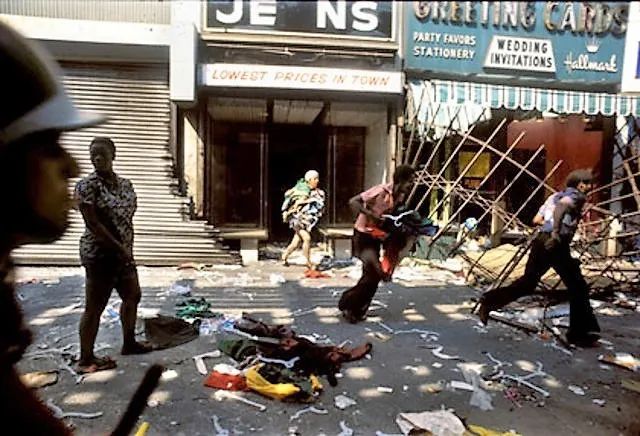 1977年7月13日晚上,仅仅因为停电,纽约就发生了大规模的纵火和抢劫。第二天天亮后,新闻里满是被破坏的店铺和抱着新电视机跑出来的年轻人。仅一晚上的时间,就有1600多家商店遭到破坏,发生了1000多起火灾,警察逮捕了3776人,是这座城市历史上最大规模的逮捕事件。