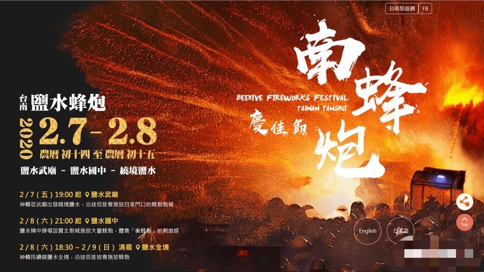 今年的盐水蜂炮举行时,台湾疫情尚不严重,最后顺利完成。