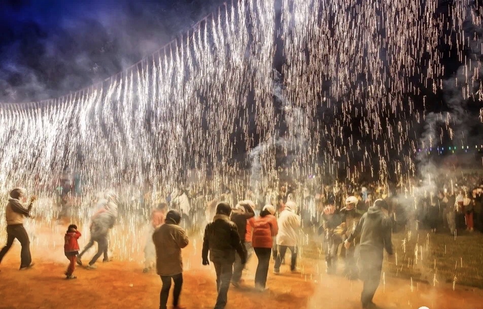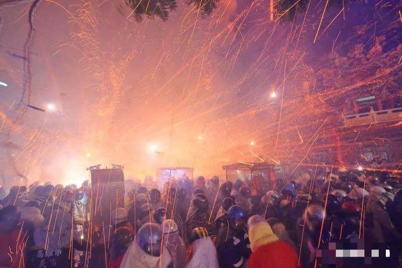 说是燃放爆竹,蜂炮的场面更像是一场正邪大战,炸裂和烟雾效果堪比大牌电影。每年元宵节那日入夜,盐水武圣庙会抬出关帝的神轿,并有一台以成千上万支爆竹组合而成的炮台,这是首发阵容。