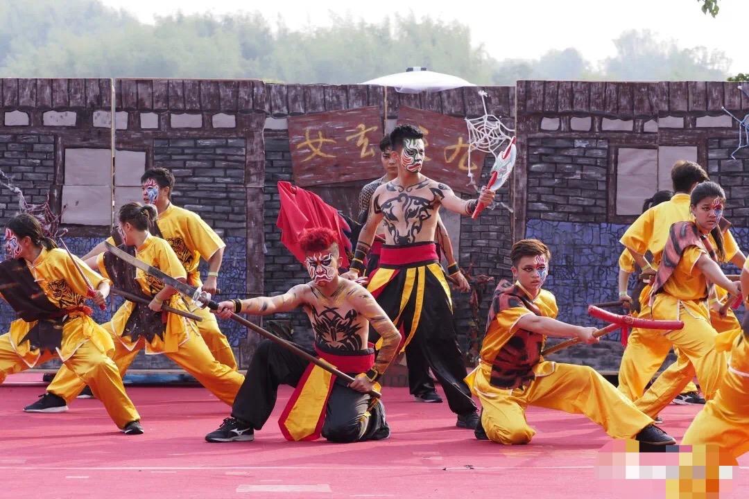 内门区表演的主要是武阵,叫做宋江阵。取水浒传中梁山好汉们忠勇仁义的形象,赋予他们降妖伏魔的能力,使之成为神明的护法使者。