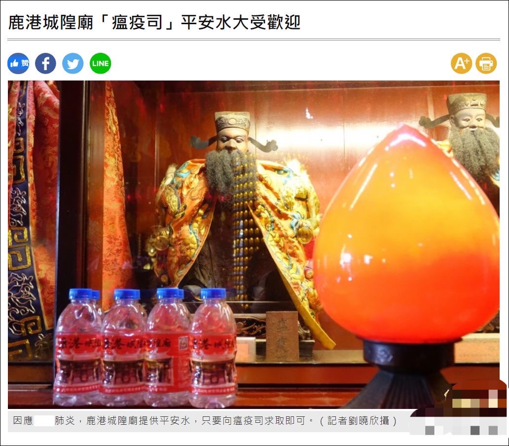 掌管阴阳两界的城隍爷,也应因疫情推出特别加持过的“平安水”,令旗下大员瘟疫司掌管,散于民众保佑安康。
