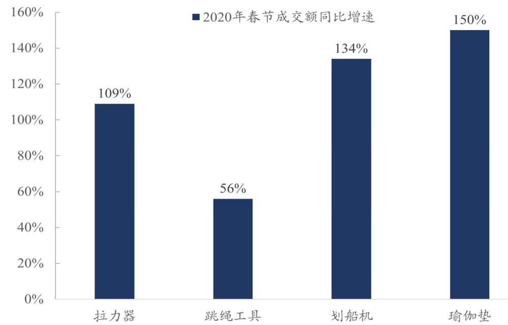 京东春节期间居家健身器材销售额显著提升 资料来源:京东大数据研究院,国泰君安证券研究