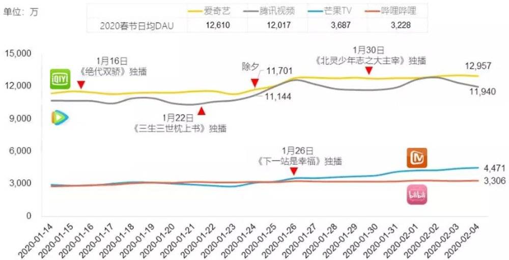 2020春节期间头部平台DAU较节前水平有所提升 数据来源:QuestMobile