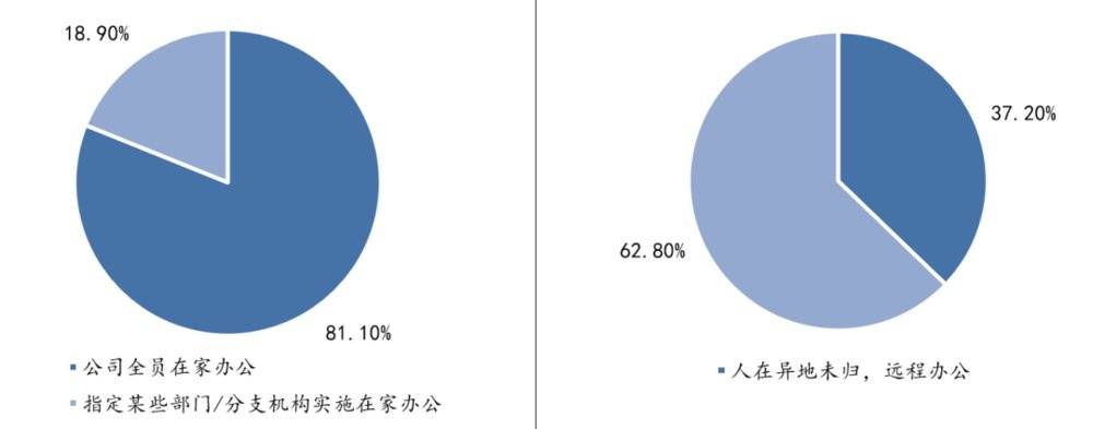疫情期间,全国企业复工形态&疫情期间,全国员工远程办公现状