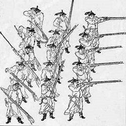 1575年的长篠之战中,日本的织田信长和德川家康联军使用火枪部队,战胜武田家的骑兵,是日本历史上火枪第一次在一场战役起决定性作用。