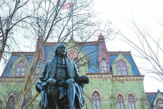 宾夕法尼亚大学的富兰克林雕像,该校由富兰克林创办于1740年