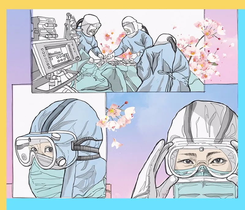 那张粉色的海报上,白色的线条勾勒出穿着防护服的女性医护人员,她们曾因为缺少卫生巾,几乎在一夜之间成为全体女性同情的对象。