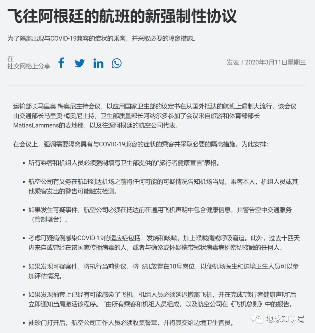 在隔壁的阿根廷,自3日首例新冠病例以来防控措施逐渐加强,如在交通枢纽的测温登记,针对来自疫区旅客的审查等。