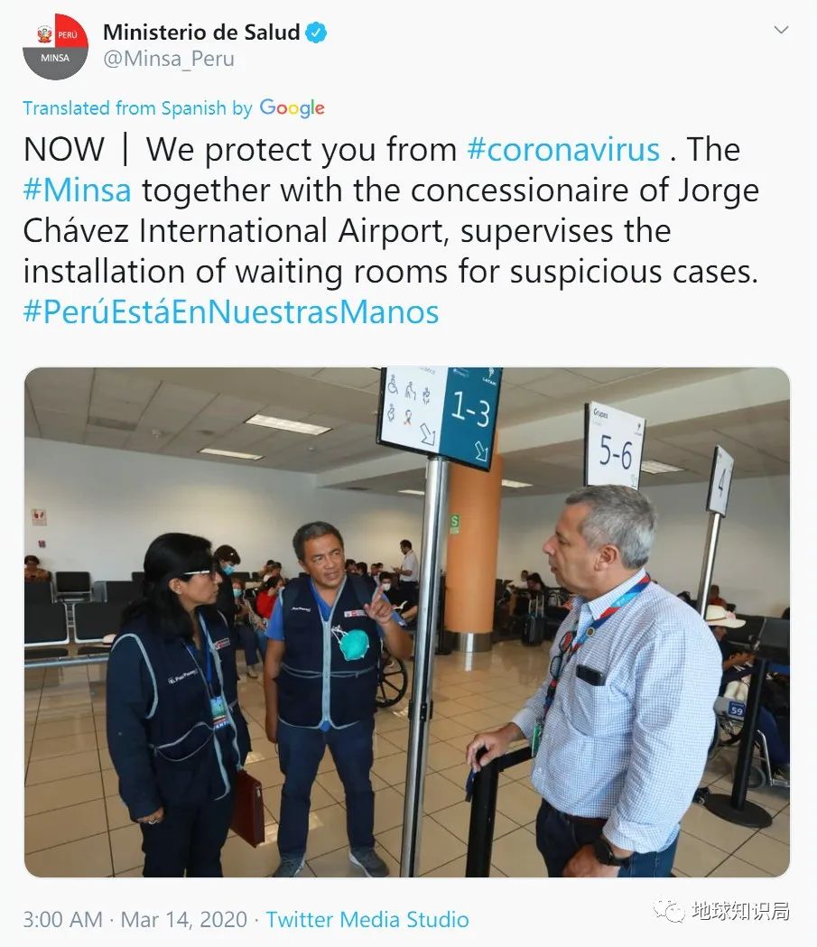 秘鲁在3月6日宣布首例确诊病例,截止10日确认的11例中,大部分与第一位病患有关。而截至14日,确诊患者达到28人。
