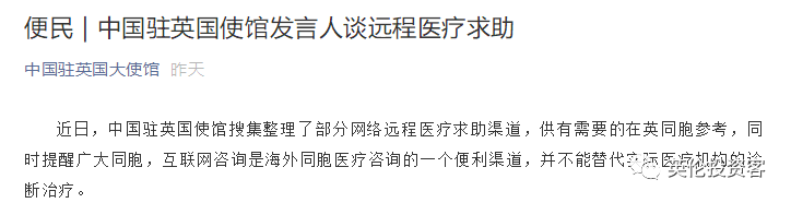 中国驻英大使馆也来帮忙了,为有需要的在英同胞们提供强有力的在线医疗保障。
