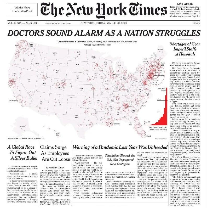 当地时间3月20日的《纽约时报》头版报道揭示,在紧迫的新冠疫情发展中,美国医护人员正处于令人揪心的危险之中。