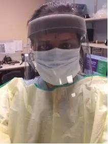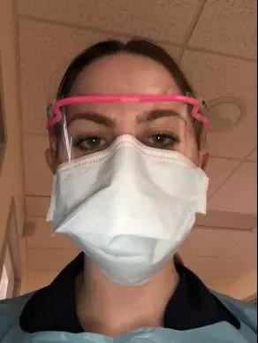我很幸运有这个面具。并不是所有的前线医护人员都有。我把我的名字写在上面,这样我就不会失去它。