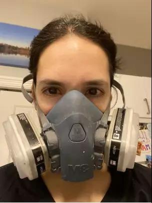 我丈夫找到了一个油漆工面罩P95,还有一个皱巴巴的小N95,正好适合我。我的眼睛都红了……我们医院没有N95…