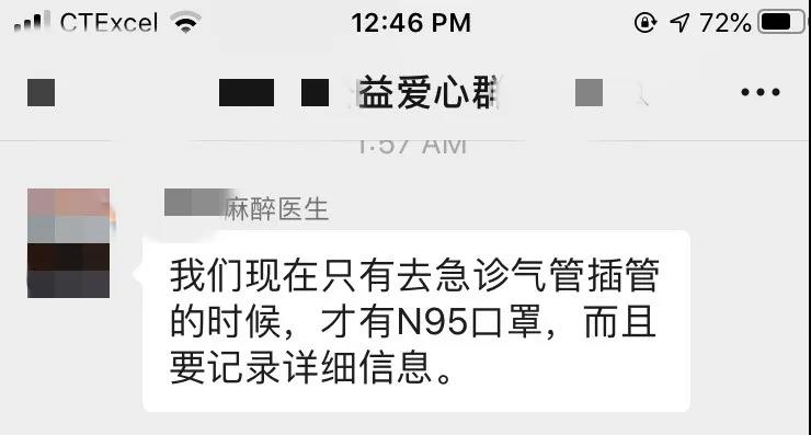 医疗物资紧缺成了美国医疗界目前讨论的最热烈的主题,作者所在的一个公益爱心群里,一位华人麻醉医生就表示,现在只有在去急诊气管插管的时候才可以戴N95口罩,而且要记录详细信息。