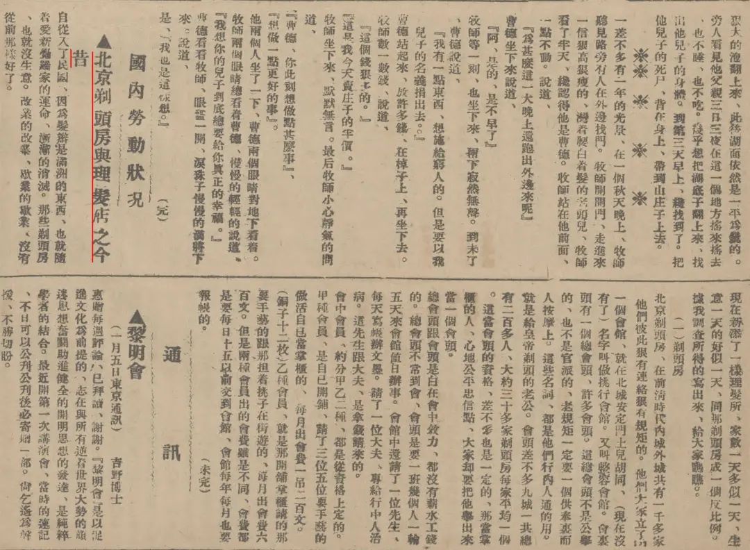 《北京剃头房与理发店之今昔》(《每周评论》1919年第5期)