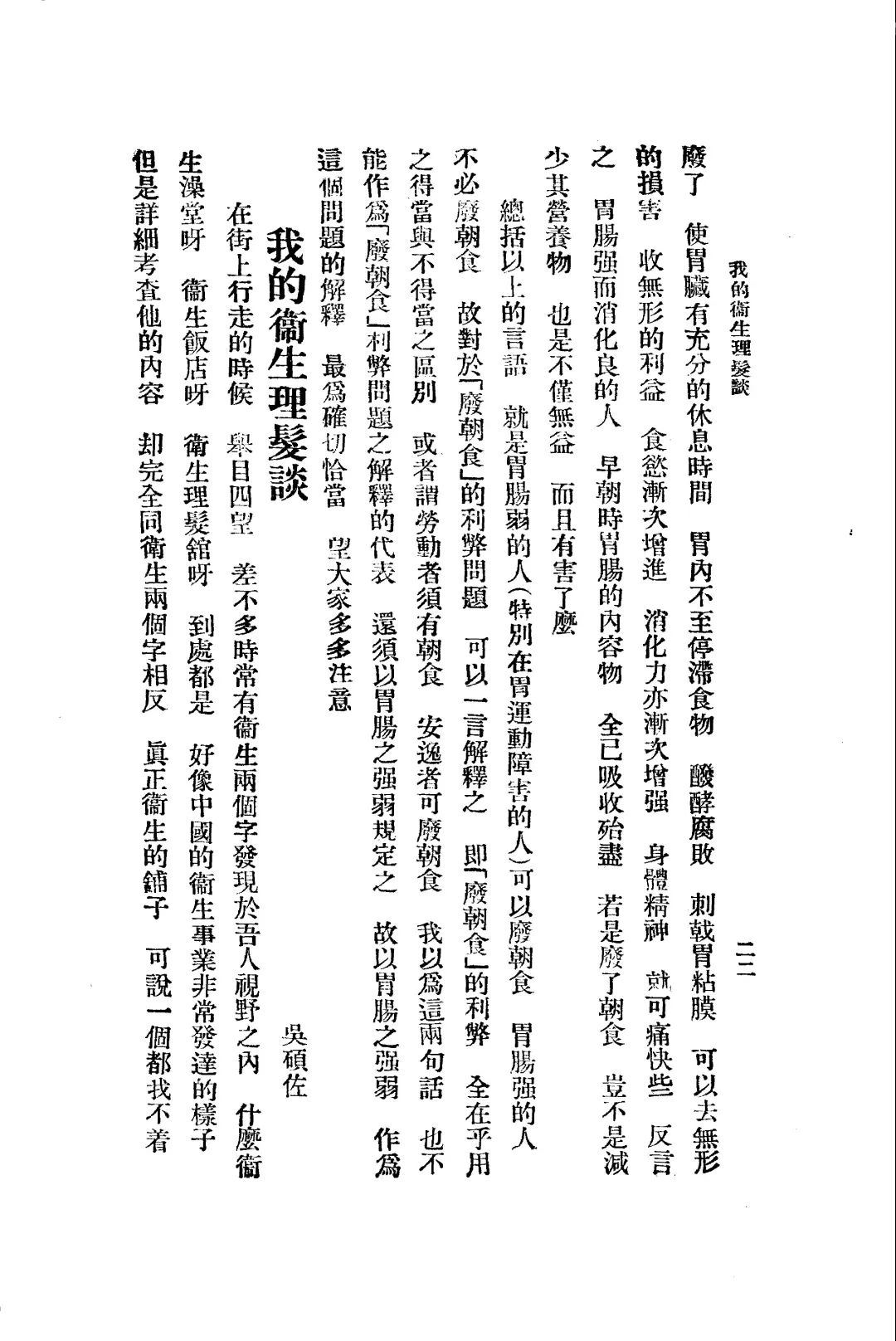 吴硕佐:《我的卫生理发谈》(《医事月刊》1924年第4期)