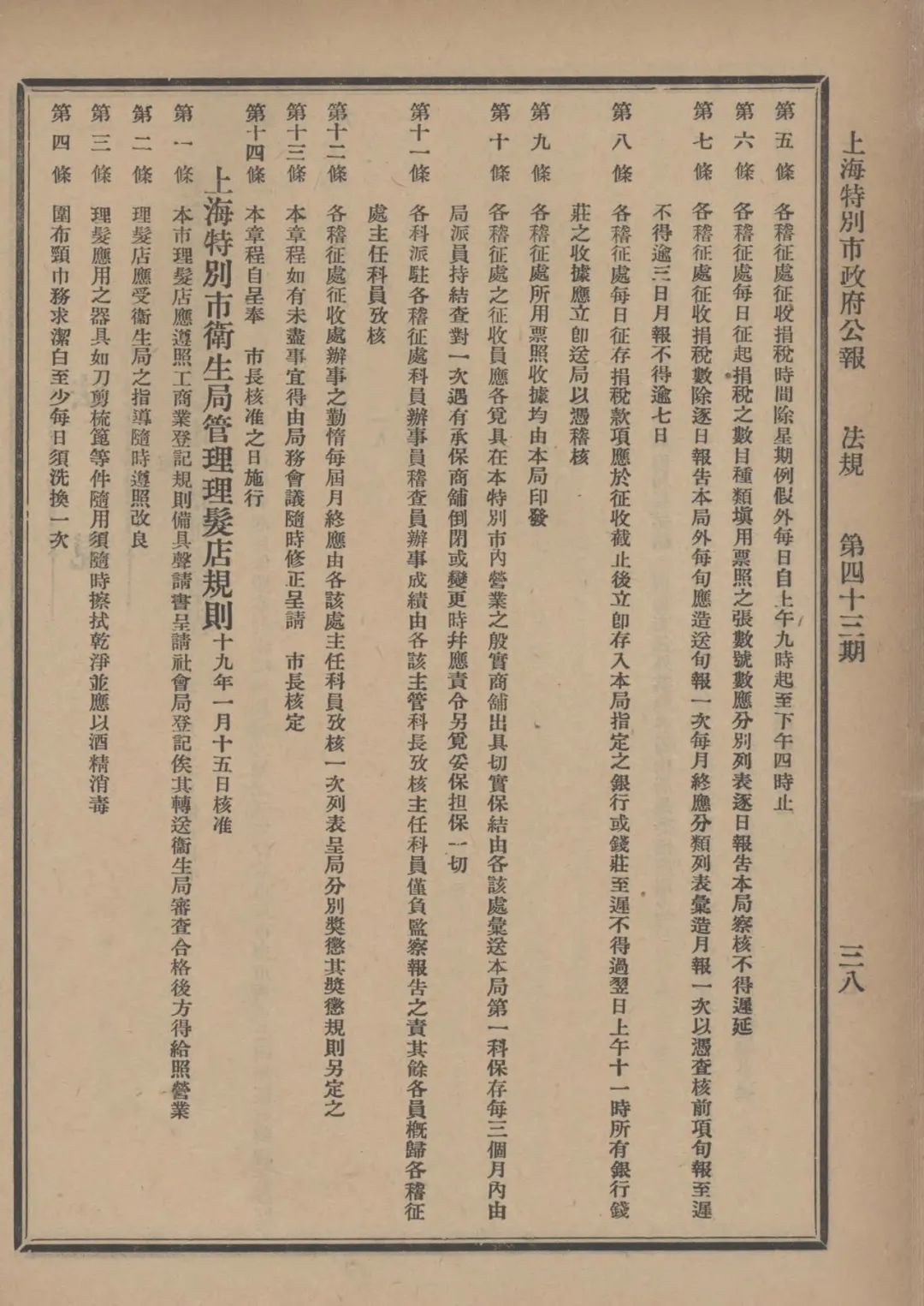 《上海特别市卫生局管理理发店规则》(《上海特别市政府公报》1930年第43期)