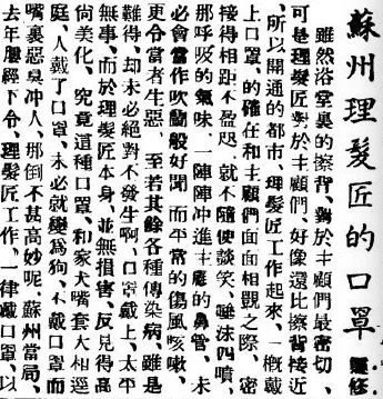 灵修:《苏州理发匠的口罩》(《金刚钻》1936年2月28日第2版)