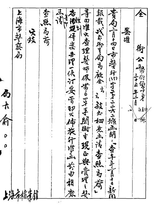 据上海市档案馆所藏档案,因《新闻报》指出理发师戴口罩执行不力,1946年2月上海市卫生局与警察局又就此问题有公函往来。可见,公众舆论对理发店卫生状况特别是戴口罩问题的关注,也反过来促使行政机关加强了相关管理。