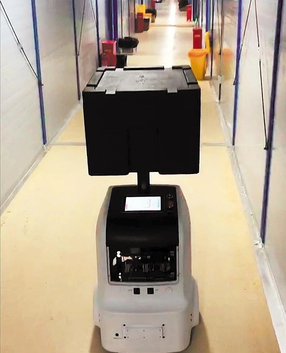 2月27日,医疗服务机器人小珈在武汉雷神山医院正式“上岗”,负责智能物资配送的工作,包括送物资进隔离区、回收被服、医疗垃圾等。