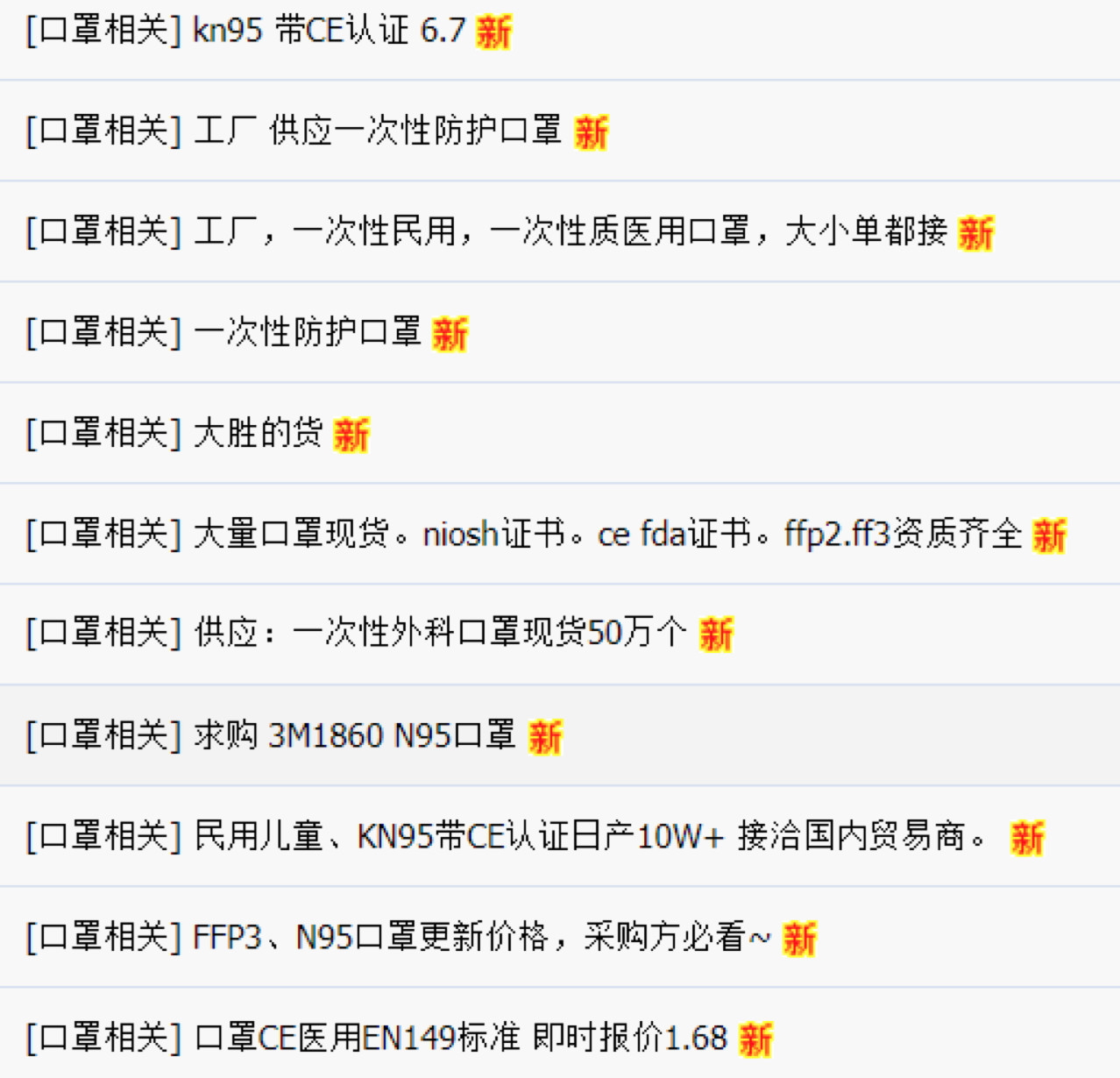 在某外贸论坛上,口罩专区已经连续多日成为用户人气最高的板块,大批国内企业正寻求口罩出口。