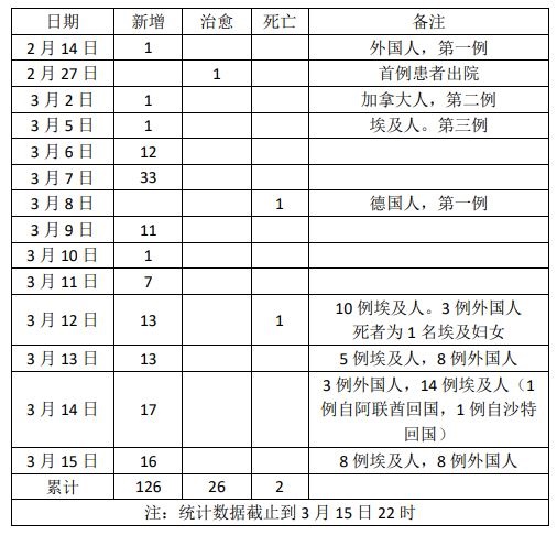 埃及感染情况统计图(截止3月15日)