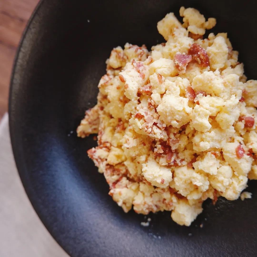 培根的味道确实很充足,嚼在嘴里的肉感饱满真实,不干涩。整个餐食是有“油气”的,因为料包都混在一起,因此,味道更加融合和浓郁。