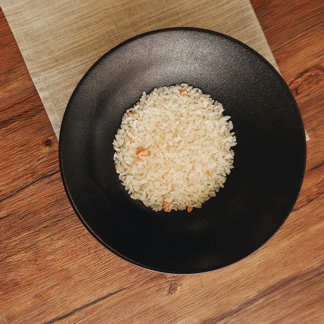 鲑鱼粒的量不多,但整体在口中的鱼鲜味还是保存的非常好。我们水量放的比较充足,因此米饭充分吸水,不沾牙,也不腻,不会有嚼起来硬硬的颗粒感。