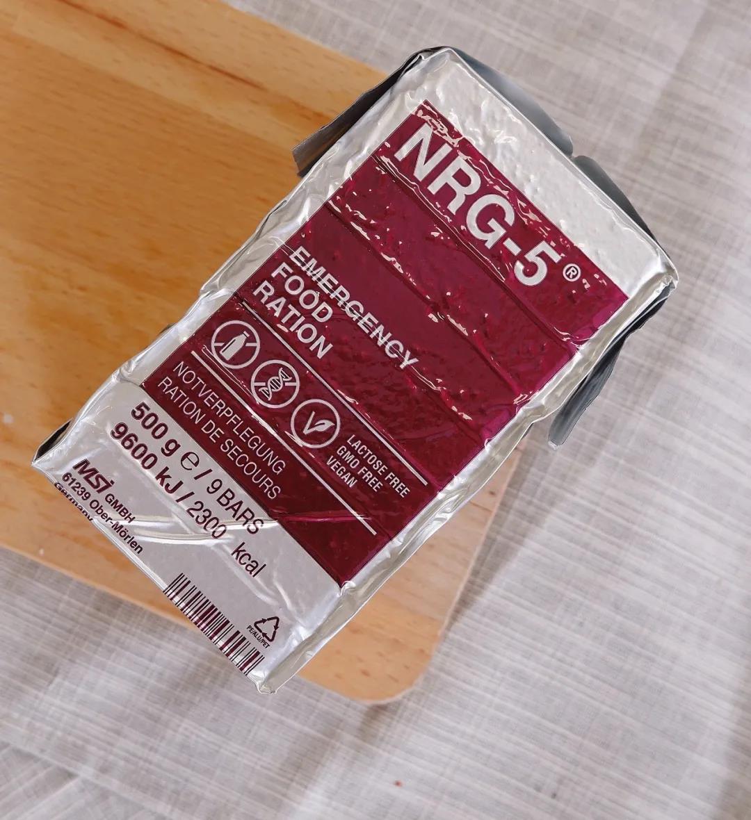 光看外包装,这款产品还真的可以说是很德国了,线条明快又没啥花哨的纸盒子里,打开就是一个真空密封的银色食品袋,上面几个大字NRG-5,看上去贼严肃。