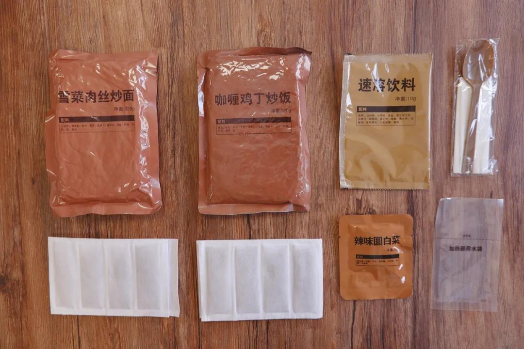 13单品的食物是36个月的保质期涵盖一份套装,包含了雪菜肉丝炒面、咖喱鸡丁炒饭两份主食,并有速溶饮料和辣味圆白菜一份。