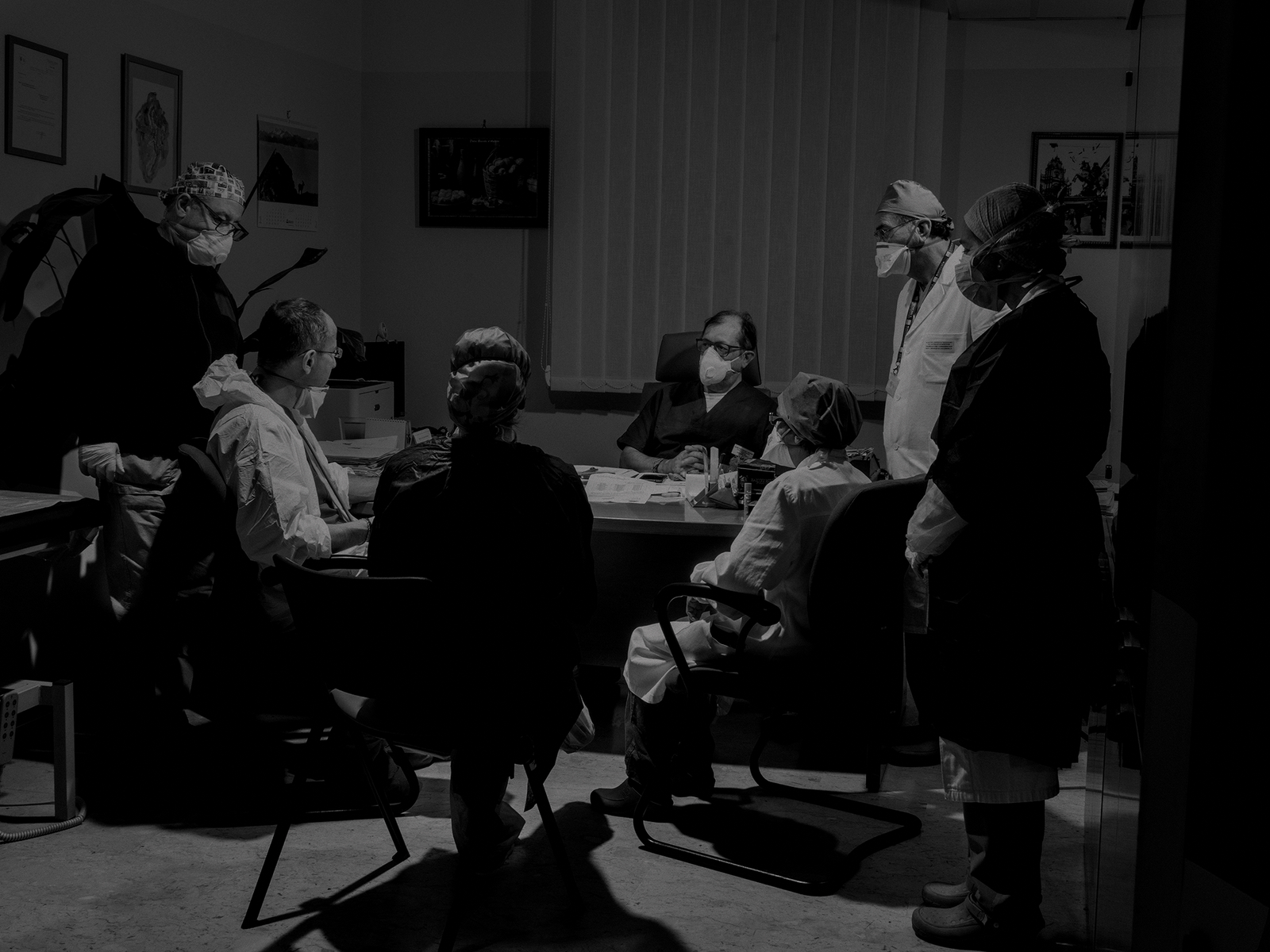 坎尼扎罗医院传染病科主任与他的团队开会。他说:“在我的职业生涯中,我从未见过这样的事情"