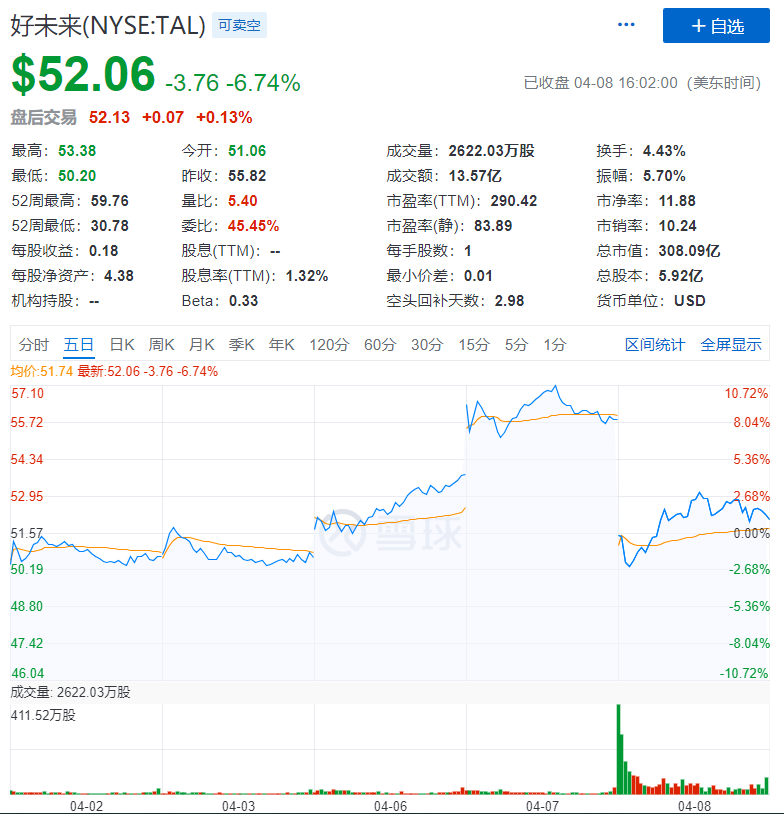 作为中国最著名的几家教育公司之一,这次好未来和瑞幸一样选择了“自爆”,主动承认销售业绩存在夸大,等于实锤了财务造假,因此也是瑞幸之后被做空的三家中概股中跌幅最大的一家公司,4月8日最高跌幅超过10%,最终收跌6.74%。