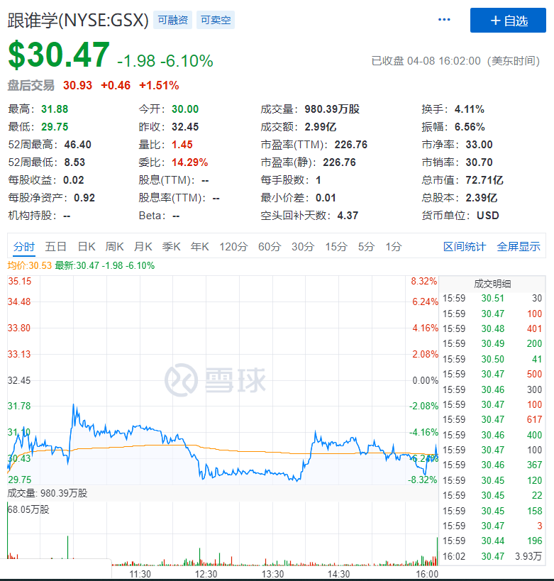 除了爱奇艺和好未来,另一家教育公司跟谁学昨天股价也大跌,就在两个月前,跟谁学被浑水机构做空,其2019年财报遭到质疑,导致股价大跌。